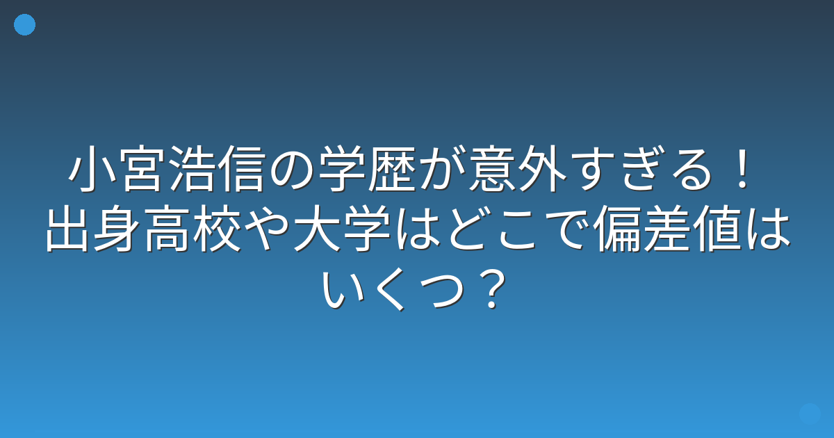 そこで今回は、小宮浩信さんの出身高校や大学、偏差値などの学歴について詳しく見ていきましょう!