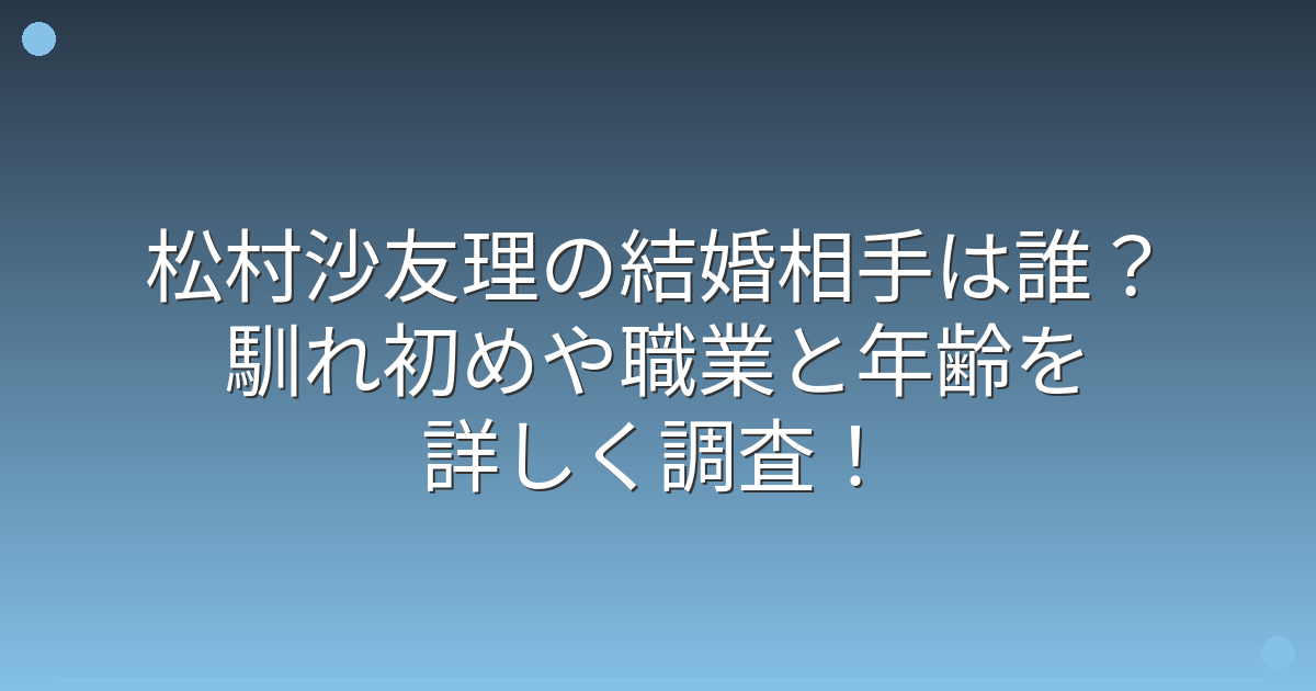 そこで今回は、松村沙友理さんの結婚相手は誰なのか、お相手の職業や年齢、馴れ初めなどについて詳しく見ていきましょう!